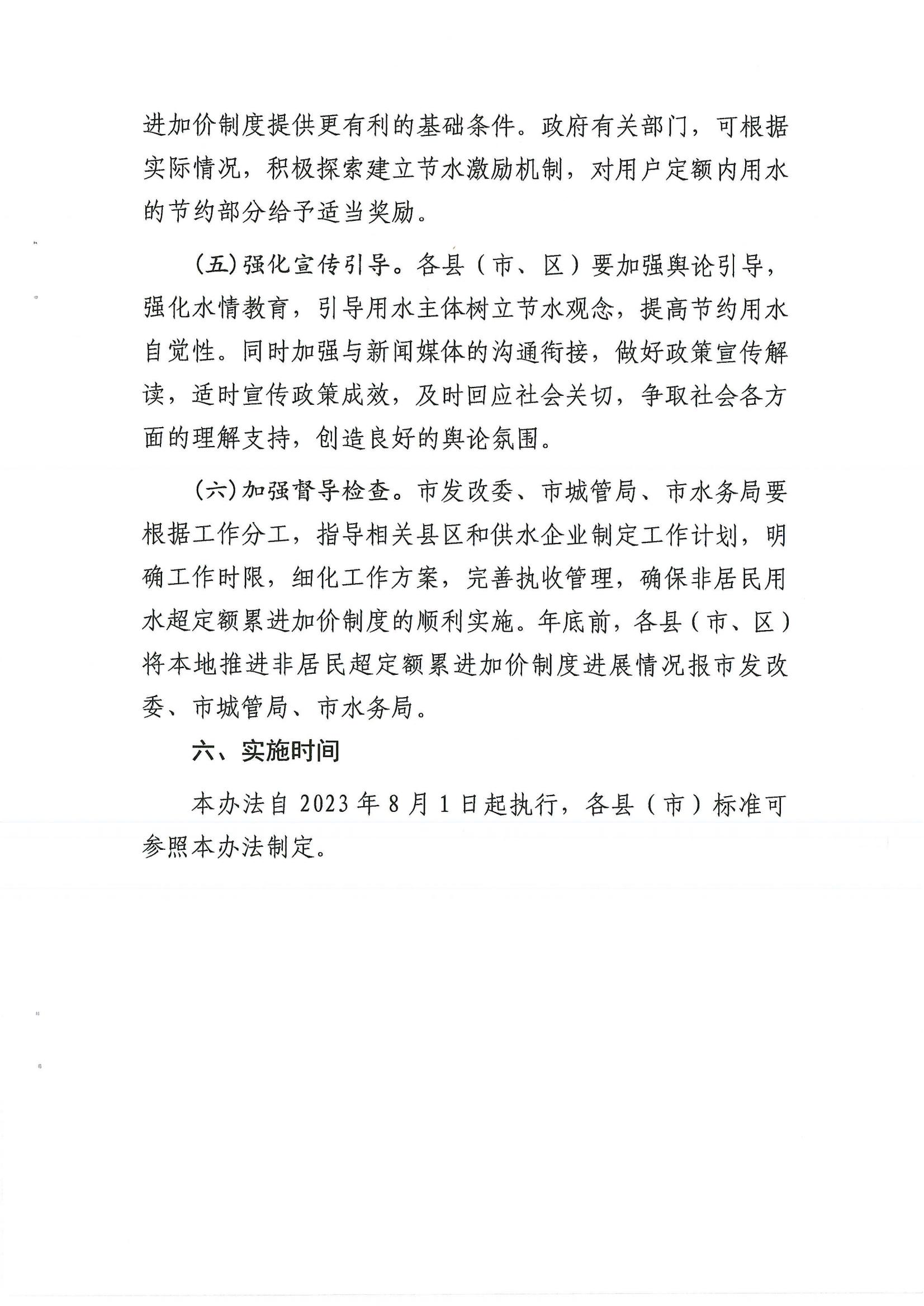 承德市發(fā)展和改革委員會等三部門關(guān)于制定城鎮(zhèn)非居民用水超定額累進(jìn)加價實(shí)施辦法的通知 承發(fā)改價調(diào)〔2023〕294號
